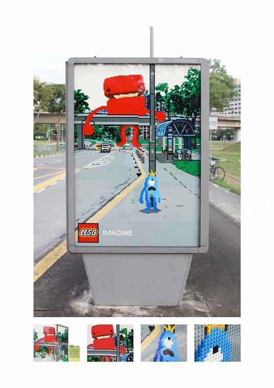 2、樂高的戶外廣告,廣告牌的畫面看上去與戶外環境融為一體的這種創意,百試不爽。